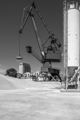 Der Osthafen Frankfurt liegt am nördlichen (rechten) Mainufer. Er gehört zum Stadtteil Ostend und ist Umschlagplatz für Massen- und Stückgut. Von 1908 bis 1912 wurde der Hafen gebaut. Der eigentliche Ausbau erfolgte allerdings erst nach dem Ersten Weltkrieg. Er verfügt über insgesamt vier Becken. Die gezeigten Fotos entstanden an den beiden Becken des stadtnahen östlichen Teiles.